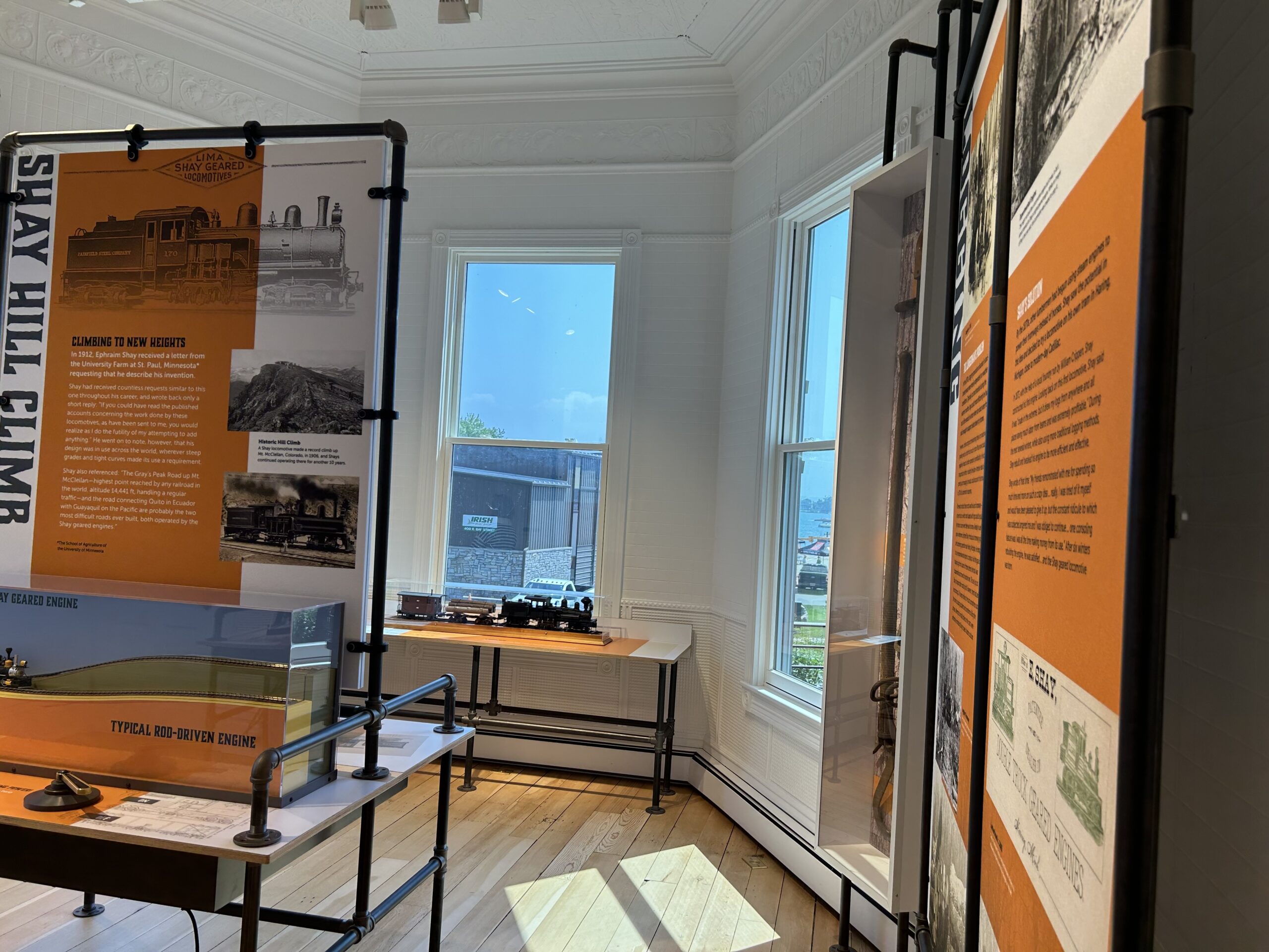 Then, in the late 1980s, Mary Cay Bartush Jones purchased the house and property and began restoring the home. In December 2016, Mary Cay donated the Shay Hexagon House to the Harbor Springs Area Historical Society. After a 2018 capital campaign, the multi-phase restoration project started in 2019, enabling the Ephraim Shay Works Museum to officially open this past summer. And even though the museum itself is small in size, its robust imagery, information, and interactive components make the experience worthwhile.