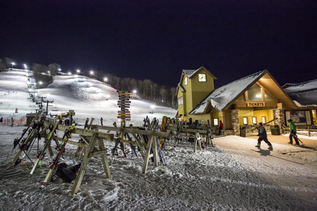 Main Lodge at Nub’s Nob at night on a clear night. Photo credit: Nub’s Nob