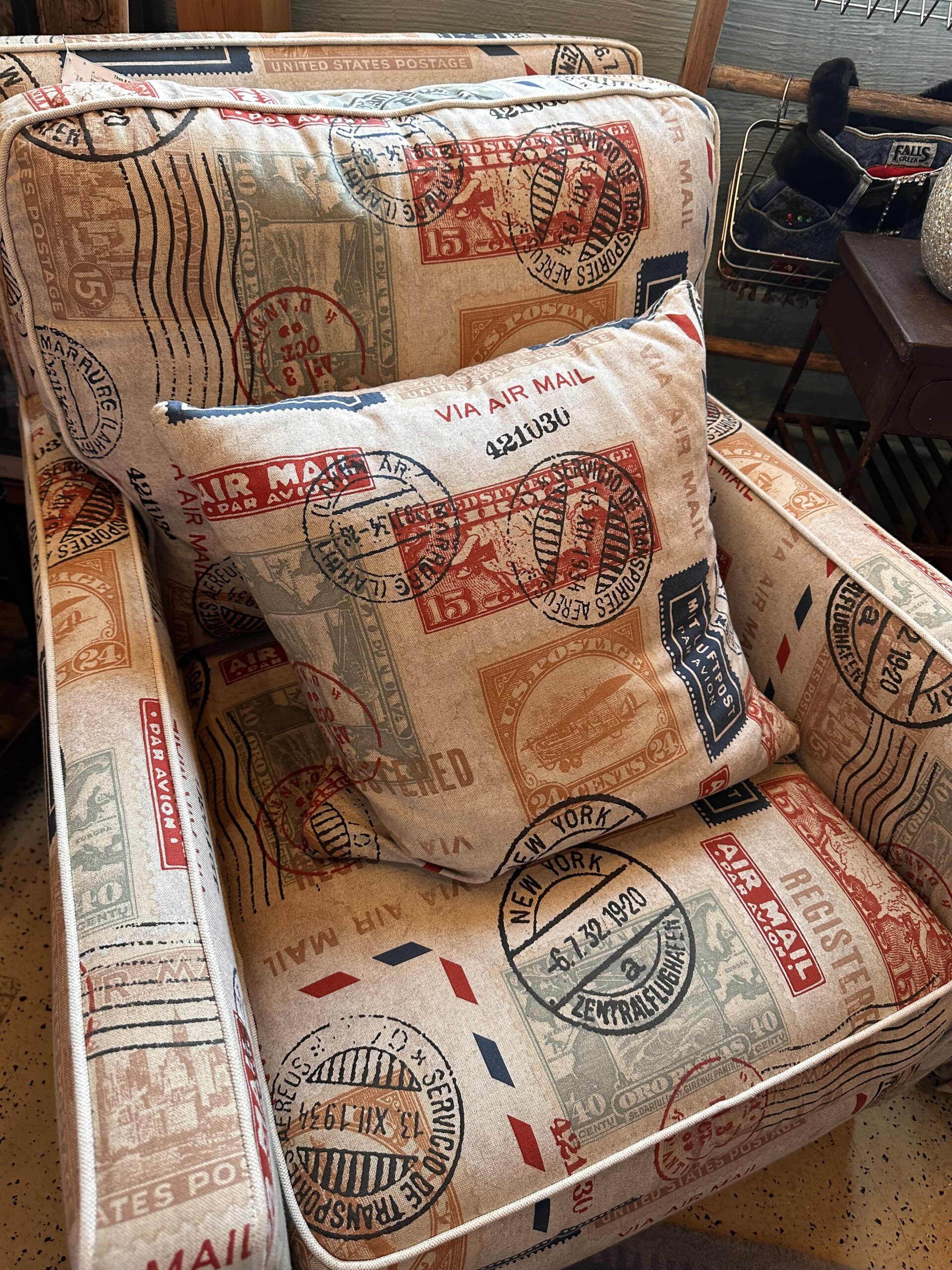 Then & Now Antique & Consignment. It’s a charming store with its comfy couches, tall wooden hutches, stunning light fixtures and other high-end home accessories, including many custom pieces. I am still dreaming about an upholstered postal-themed chair and matching ottoman, and if I had room for another piece of furniture in my house I might have found a way to justify the $695. I opted instead for a cute turquoise wall hook replicating a bird inside a cage. Since my visit, I learned that Then & Now has an off-site warehouse and they host special sales with items not found in the store. If you sign up for their email alerts, you can learn when the next sale is planned. They also accept consignments and buy full estates.