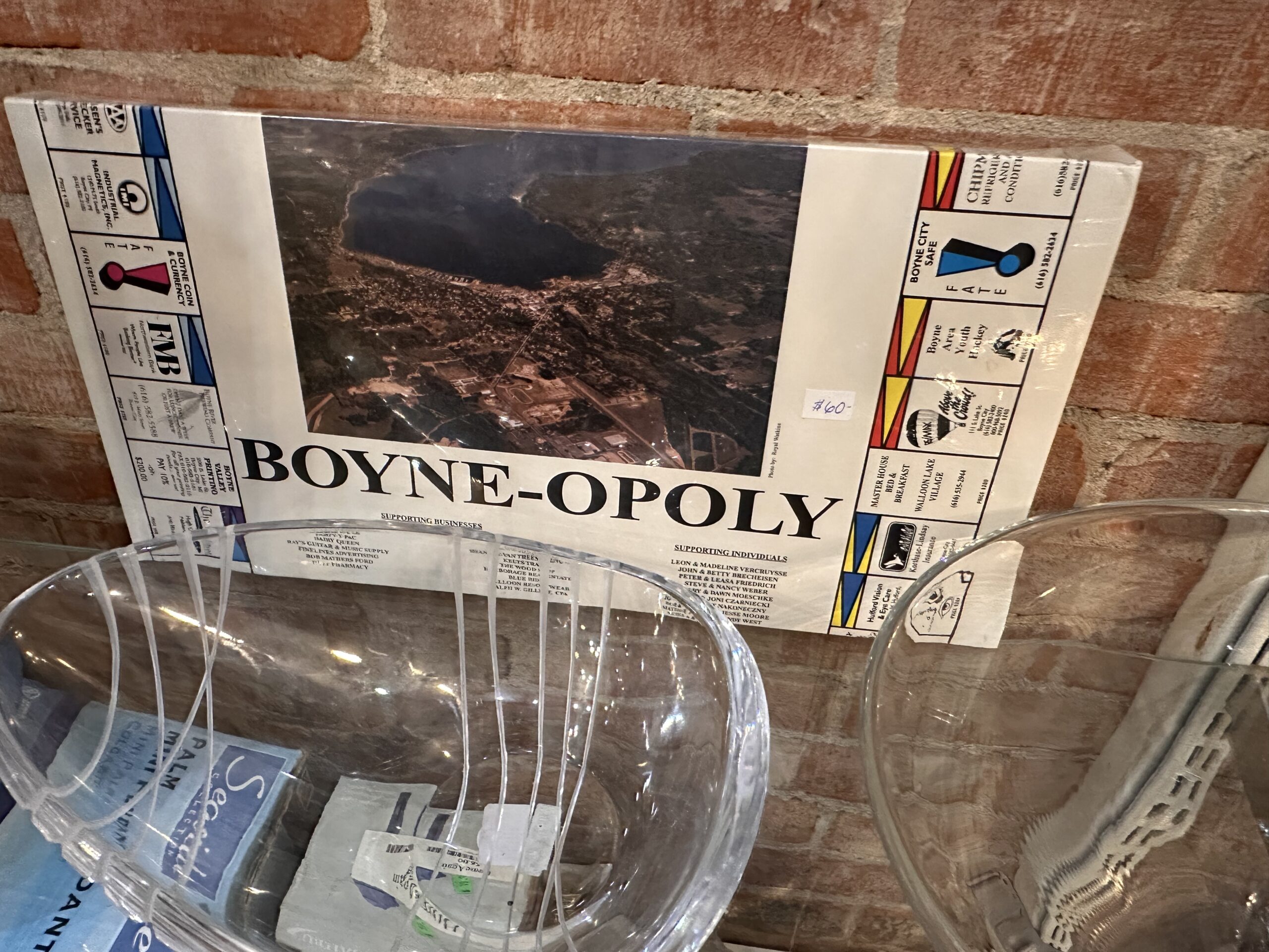 Home Again, I discovered an upscale resale store where everything is donated and all proceeds support the Charlevoix Area Humane Society. What was neat about this shop was that tucked in between crystal dishes, paintings, tapestries, antiques, and other collectibles were framed prints of dogs and cats available for adoption through the Humane Society. Fittingly there was a room at the back of the store with all kinds of pet items—leashes, collars, toys, and more. There was also a small room stocked full of vinyl albums and books. If you’re looking for a copy of BoyneOpoly, this is the place to find one (at least it was when I was there).
